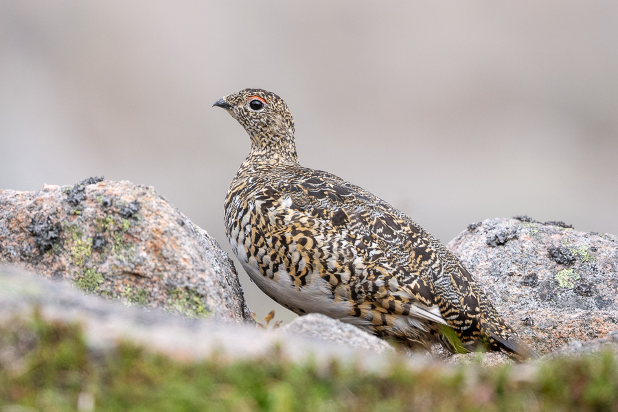 Im Sommer graubraunes, im Winter schneeweisses Gefieder.