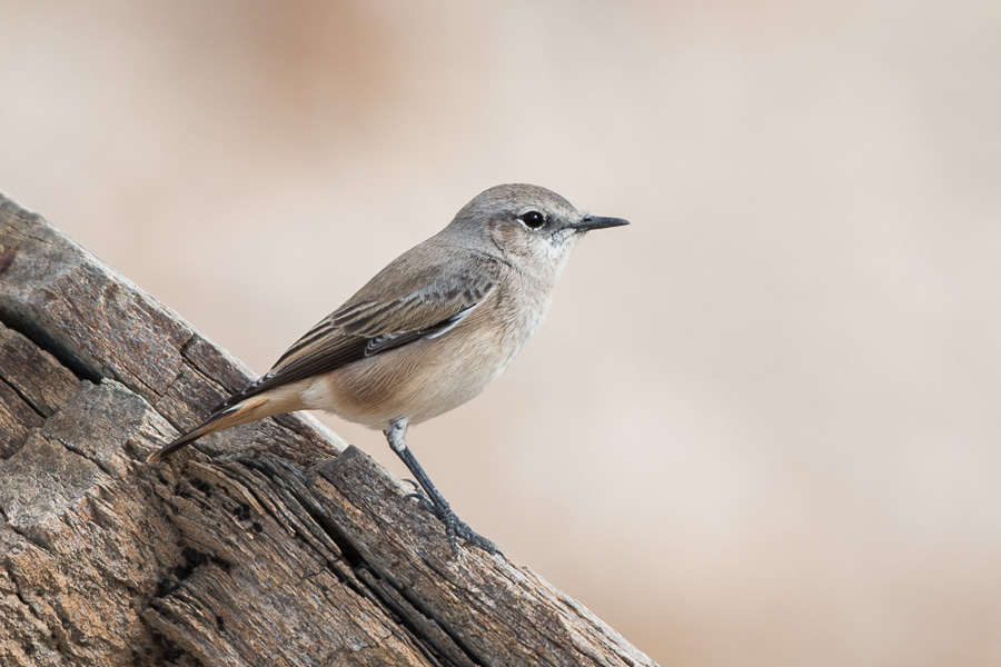 Kleiner Steinschmätzer mit hell graubrauner Oberseite, beiger Unterseite und rostbraun getönten Flanken. Kehle immer hell weisslich; Bürzel und Schwanz rostorange mit steinschmätzer-typischem schwarzem T-Muster. Ohrdecken und Zügel dunkel; kurzer, weisser Überaugenstreif.