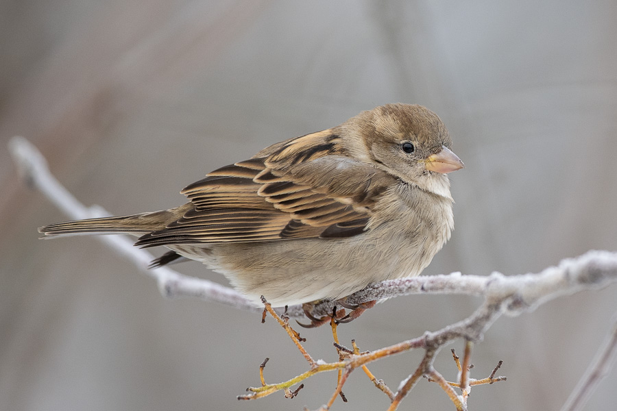 Relativ kräftig gebauter Singvogel; Gefieder überwiegend grau-braun.