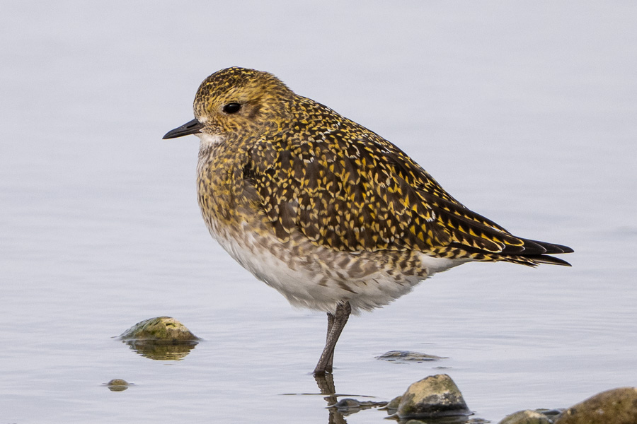 Schmale, spitze Flügel; relativ schlanker Schnabel; in allen Federkleidern goldbraun-schwarz gemusterte Oberseite.