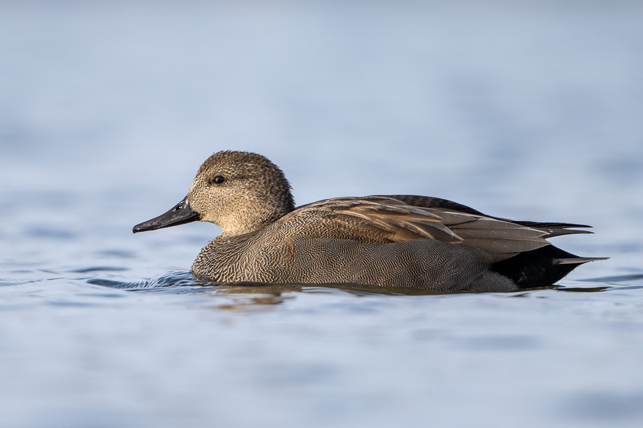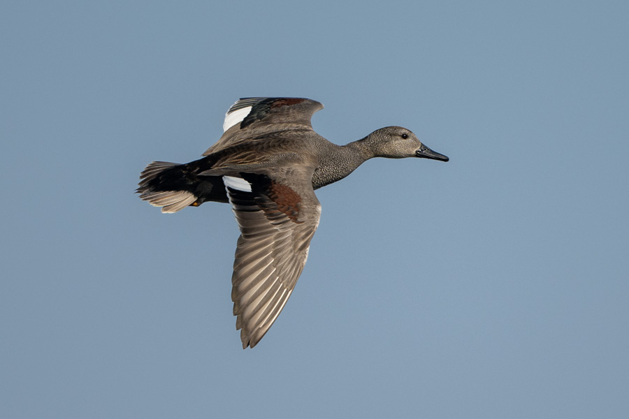 Typische Schwimmente, etwas kleiner als die Stockente; in allen Federkleidern weisser Flügelspiegel.