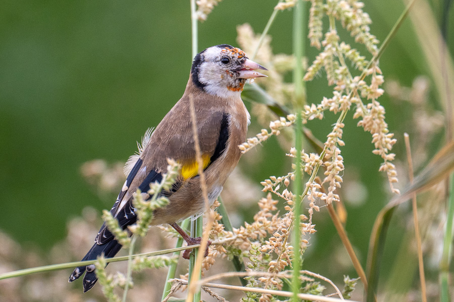 Feine Samen (etwa von Disteln), nebenbei auch kleine Insekten.