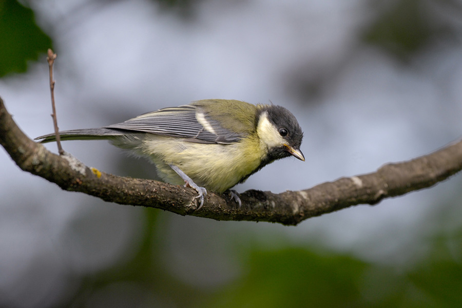 Grösste Meise; Kopf schwarz mit grossen weissen Wangenfeldern; Mantel grünlich; Unterseite gelb mit schwarzem Längsstreif.