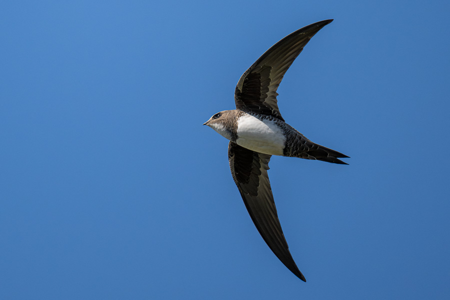 Relativ grosser, kräftiger Segler; weisser Bauch und weisse Kehle, die von einem braunen Brustband getrennt sind.