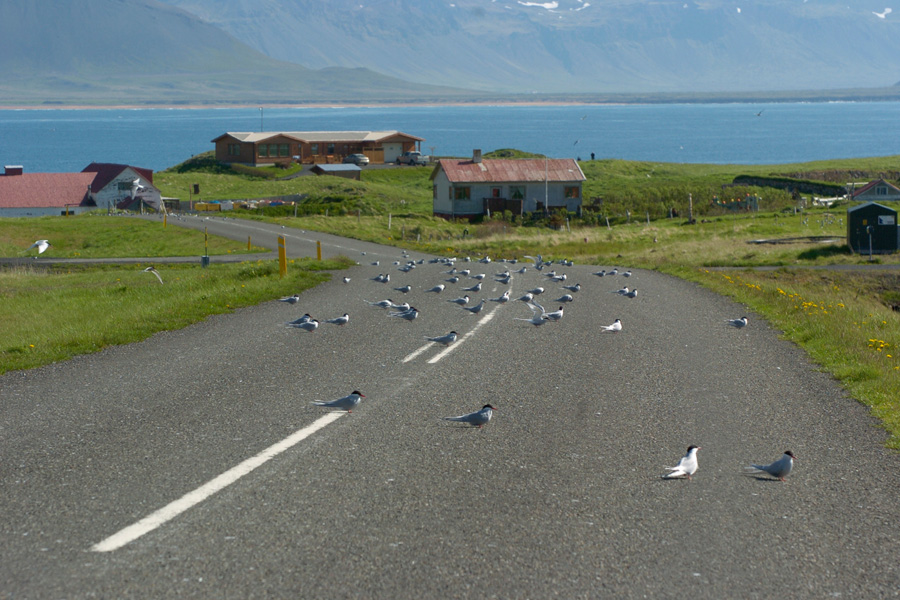 Beobachtungsbedingungen: Zwar gibt es in Island wenig "Beobachtungs-Infrastruktur", doch wird man dies auch kaum vermissen. Fast alle interessanten Arten findet man direkt von den Strassen aus, und da die meisten Vögel gegenüber Autos wenig Scheu zeigen, kann man den Wagen gleich als eine Art "mobilen Hide" einsetzen. Vorteilhaft ist hierbei auch das geringe Verkehrsaufkommen, das es einem erlaubt, fast jederzeit auch auf Hauptstrassen stehen zu bleiben, um zu beobachten.