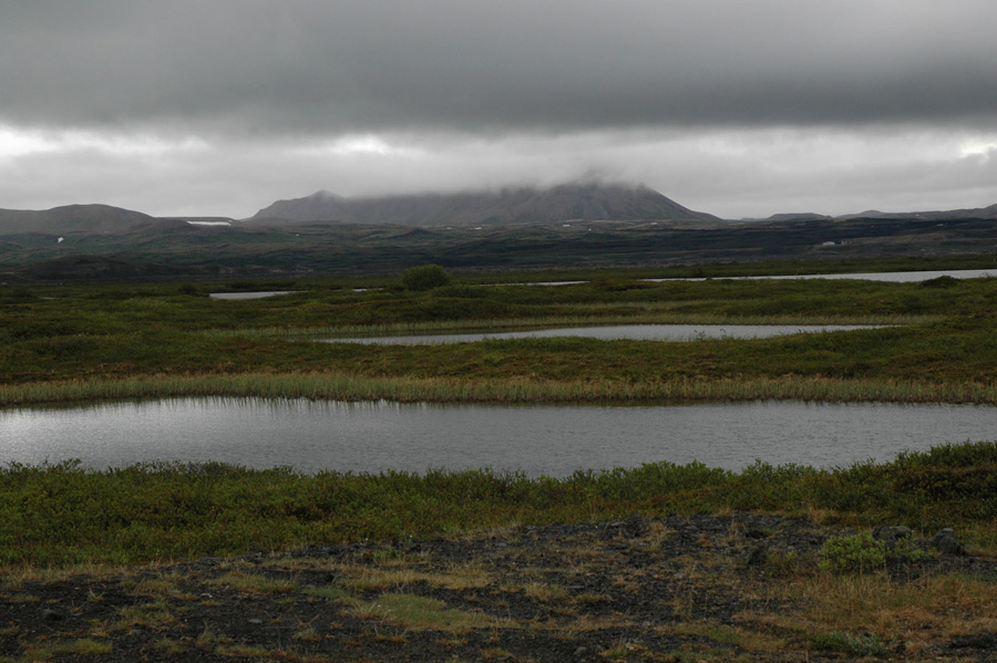 Nach einer kurzen Fahrt mit einer schönen Sumpfohreulen-Beobachtung erreichten wir bereits das Ziel des heutigen Tages - die Region Mývatn. Leider wurde das trübe und zeitweise regnerische Wetter der grossartigen Kulisse bei weitem nicht gerecht. Angesichts der Nässe beobachteten wir vorwiegend aus dem Auto, konnten aber trotzdem einiges sehen, unter anderem Ohrentaucher, ein Eis- und ein Trauerentenpaar, mehrere Spatelenten, Pfeif- und Bergenten, Mittelsäger, Odinshühnchen und das Übliche an Limikolen.