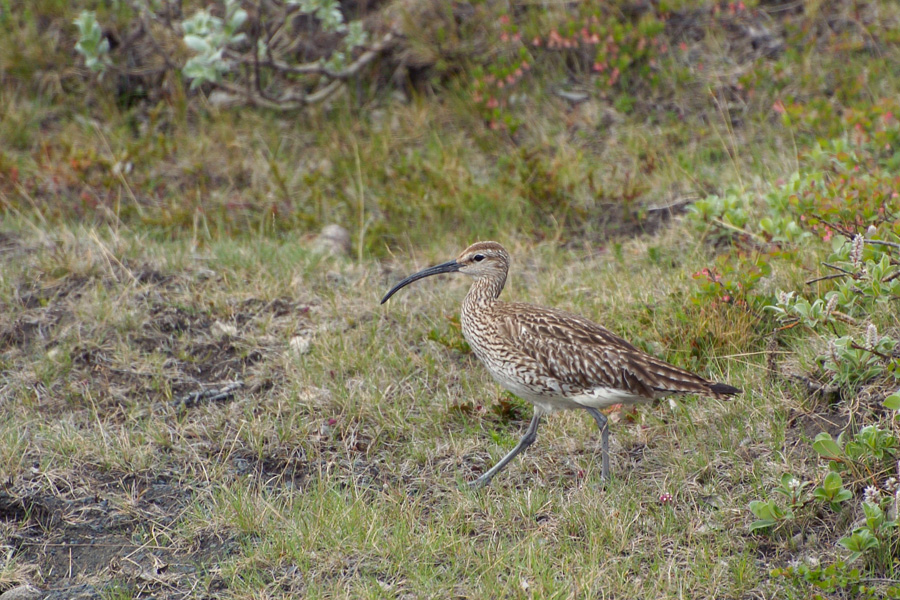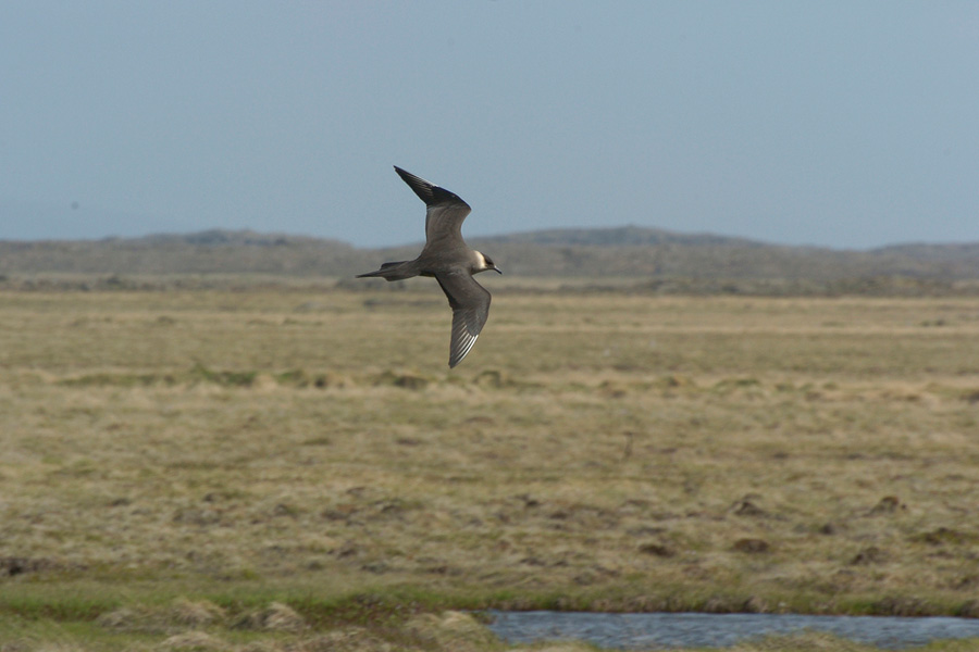 Nach Borgarnes bogen wir auf die Strasse 54 Richtung Nordwest ab und machten kurz darauf einen Abstecher über eine Nebenstrasse (540) durch das Gebiet Mýrar. Zusätzlich zu den bereits vorher allgegenwärtigen Arten konnten wir auf den Teichen Eis- und Sterntaucher beobachten und sahen zahlreiche Schmarotzerraubmöwen, Mantel- und Dreizehenmöwen sowie eine Eismöwe und ein Alpenschneehuhn. Viele Vögel sassen direkt an oder auf der Strasse und liessen sich aus dem Auto hervorragend beobachten.